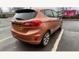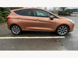 Vehicle Overview * Model: Ford Fiesta (Mk8) * Trim: Likely Titanium or Vignale (indicated by the chrome window surrounds and grille). * Key Features: Includes a panoramic glass sunroof, rear parking sensors, and 10-spoke alloy wheels. Bodywork & Paint Condition Overall, the car presents well with a high-gloss finish, but there are specific areas of concern: * Rear Bumper (Offside/Right): There is a noticeable scuff/scratch on the lower corner of the rear bumper, near the wheel arch. This appears to have broken the paint surface, showing darker plastic underneath. * Front Fascia: The front bumper and hood appear clean in the photos, with no major stone chips or dents visible. The "Ford" emblem and chrome grille slats are intact and well-maintained. * Panels: The shut lines (gaps between doors and wings) appear uniform, suggesting no major structural repairs. The metallic flake in the "Chrome Copper" paint is consistent across panels. * Glass: The panoramic roof and windscreen appear to be in good condition without obvious cracks, though the wipers are positioned mid-sweep in one photo (likely just turned off mid-cycle). Wheels & Tyres * Alloys: The car is fitted with 16" or 17" 10-spoke alloy wheels. From the photos, the nearside rear wheel shows light brake dust but no heavy "kerbing" (scrapes on the outer rim). * Tyre Context: Public MOT records for this registration have previously flagged "tyres worn close to legal limit" as advisories. You should check the current tread depth, especially on the inner edges. Lights & Trim * Headlights: Crystal clear with no signs of UV yellowing or internal condensation. The LED daytime running lights are fully functional. * Chrome Work: The window surrounds and front grille chrome are bright and free of "milking" or pitting. * Rear Lights: The "C-shaped" LED tail lights are intact with no cracks or water ingress.
